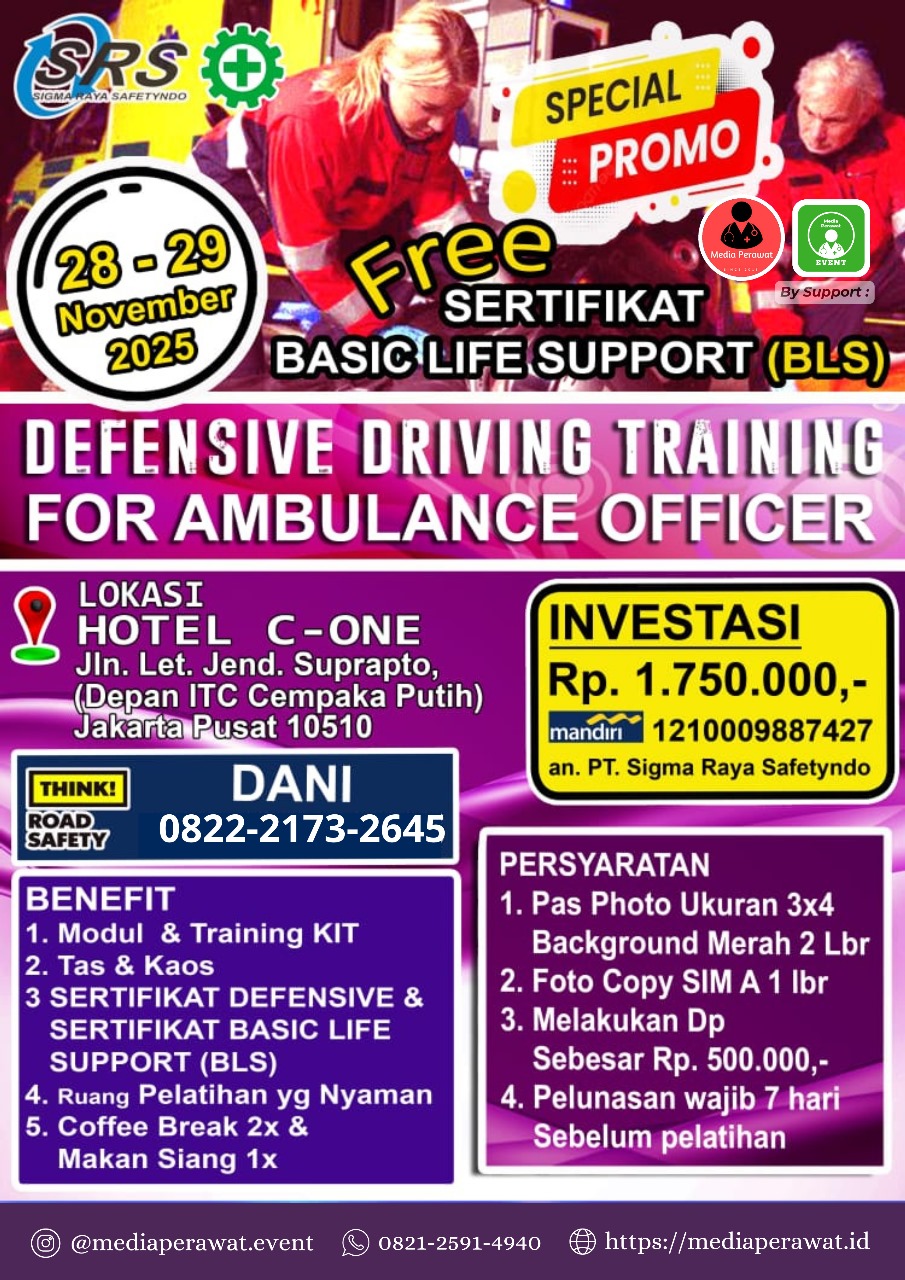 Mediaperawat.id – Pelatihan Defensive Driving Training (DDT) for Ambulance Officer adalah pelatihan mengemudi aman dan tanggap darurat yang dirancang khusus bagi petugas ambulans agar mampu mengemudi dengan aman, cepat, dan efisien saat membawa pasien dalam kondisi gawat darurat.