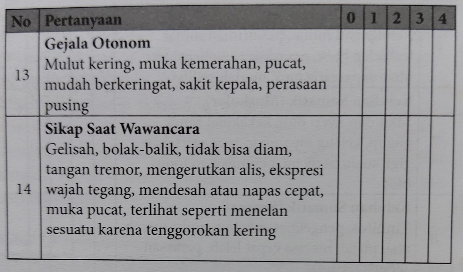 Berikut tabel Pengkajian Ansietas HARS :