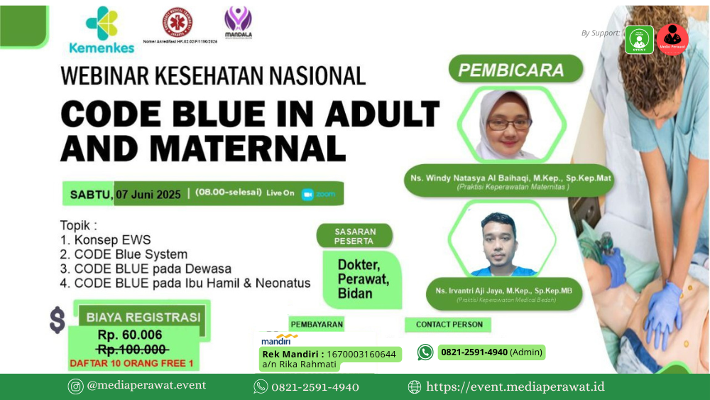 Mediaperawat.id – Ikuti Webinar Kegawatdaruratan Kesehatan dengan tema : “CODE BLUE IN ADULT AND MATERNAL”